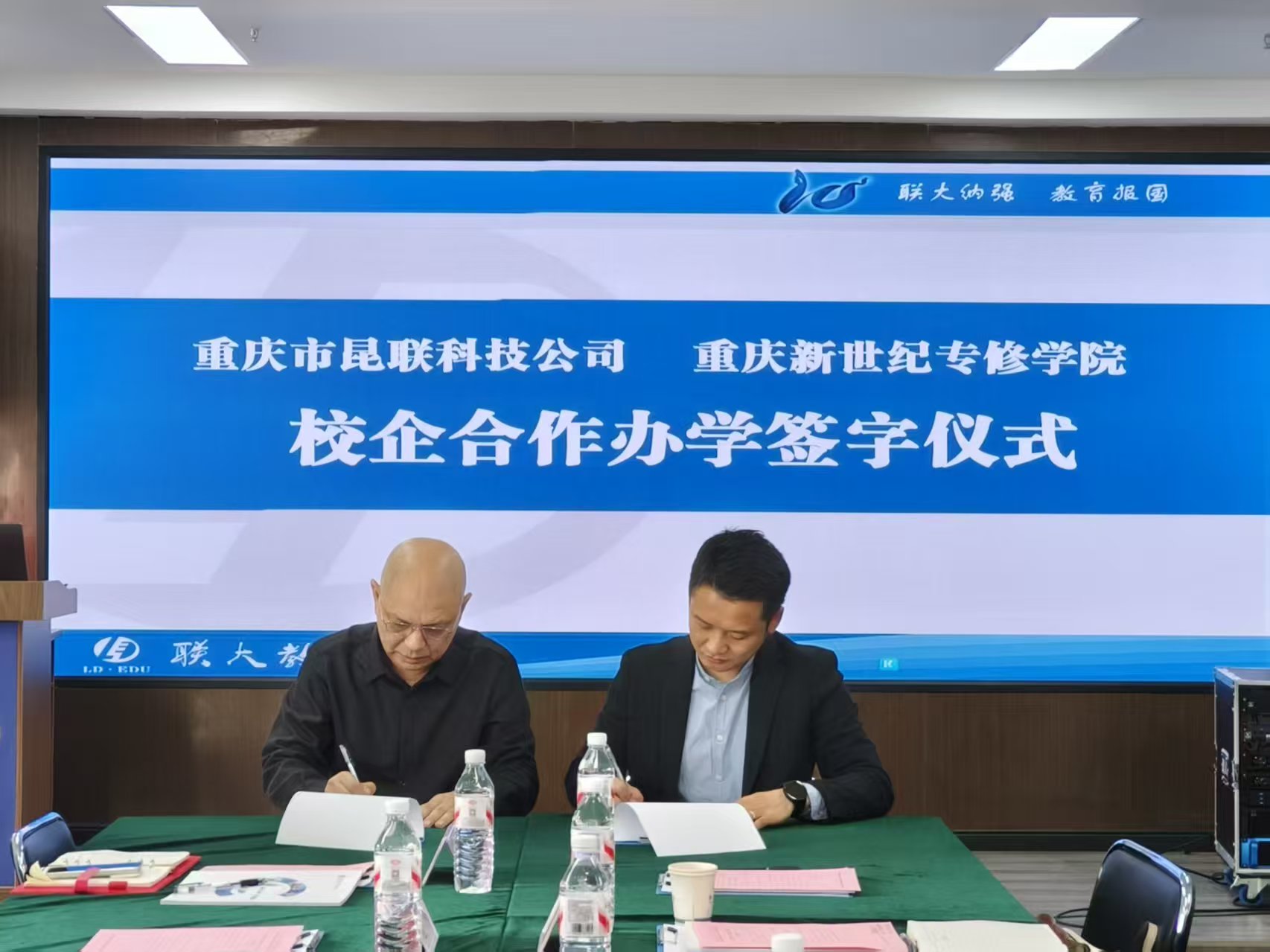 11月10日,重庆联大教育集团与重庆新世纪专修学院开展校企合作,共建重庆新世纪专修学院的直属二级学院——“数智双创学院”,计划办学规模800人,旨在为重庆联大教育拓展“创新就业”新赛道,实现我国大学毕业生的优质就业做贡献。