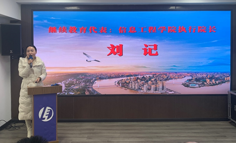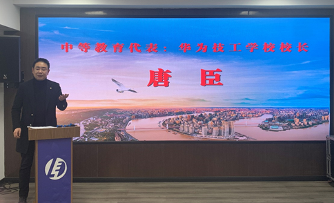 图为:普通高教代表—智慧教育学院执行院长黄成同志发言