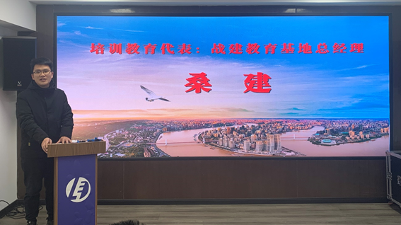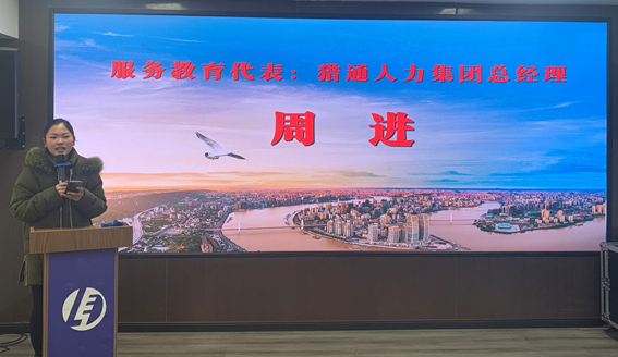 图为:服务教育代表—重庆猎通人力集团总经理周进同志发言