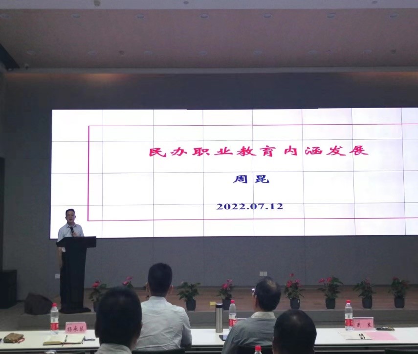 总结会正式开始前,特邀嘉宾重庆文理学院教师发展研究所所长、教育博士周昆教授作主题讲话——《民办职业教育内涵发展》。周教授从知识到教育,教育到职业教育,职业教育到民办职业教育的多维度进行了深度的解析,现场热烈的掌声拉开了本次总结大会的序幕。